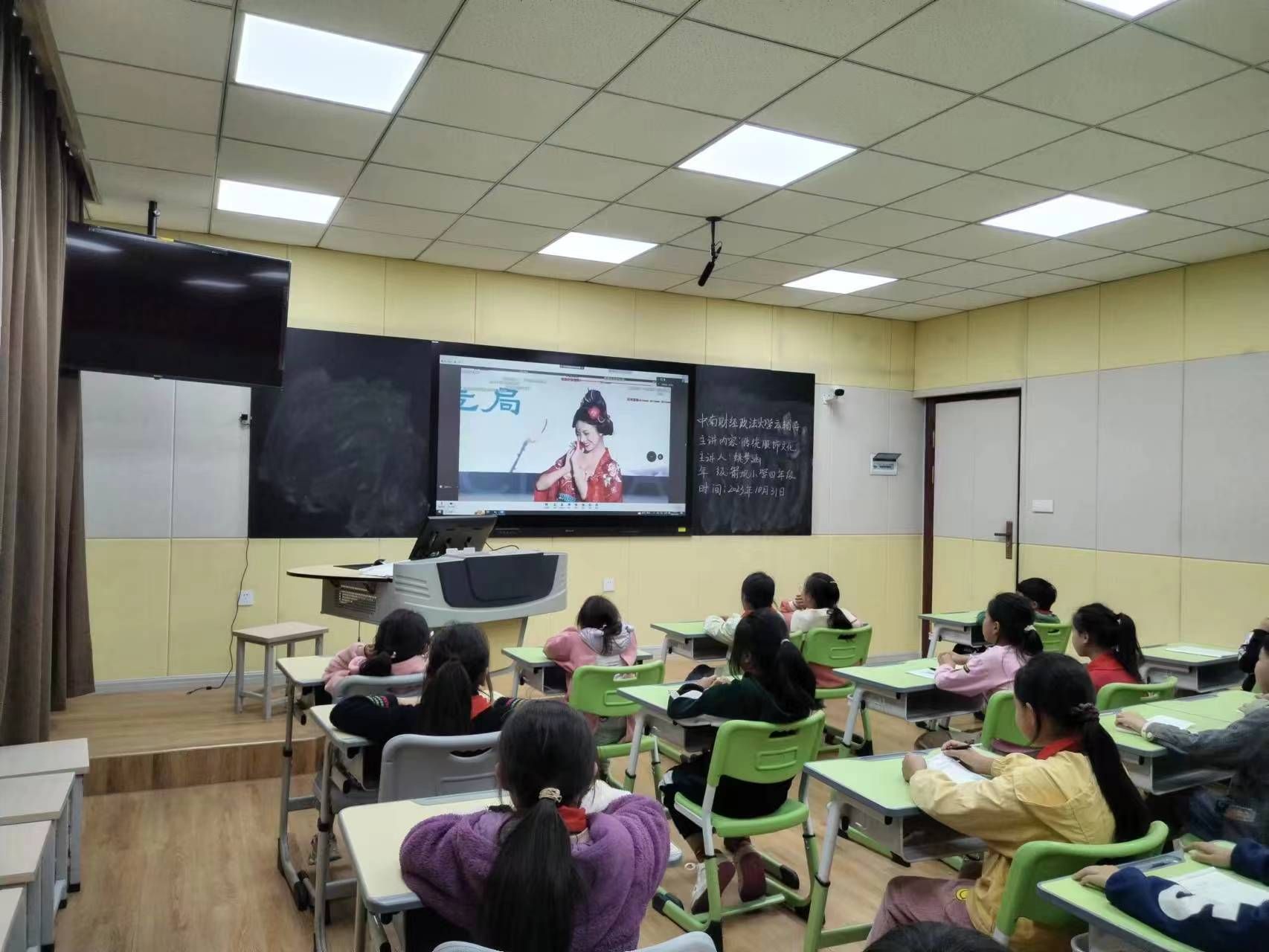 在最后一个阶段,两位老师扩展了同学们对于宋元明清这四段时期服饰文化的了解,还为他们详细介绍了考据研究,通过有理有据,声色并茂的讲解,让同学们感同身受地想要继承与发扬中国传统服饰,由此引出在现代文化潮流和社会背景下青少年可以为守护服饰传统文化所做的一些示范,老师首先通过让同学思考并发表自己的见解,随后介绍了三个实用的方法,辅以视频介绍提高同学的积极性。这不仅能够培养同学们的语言表达能力,还提高了同学们的自主思考和创新的能力。