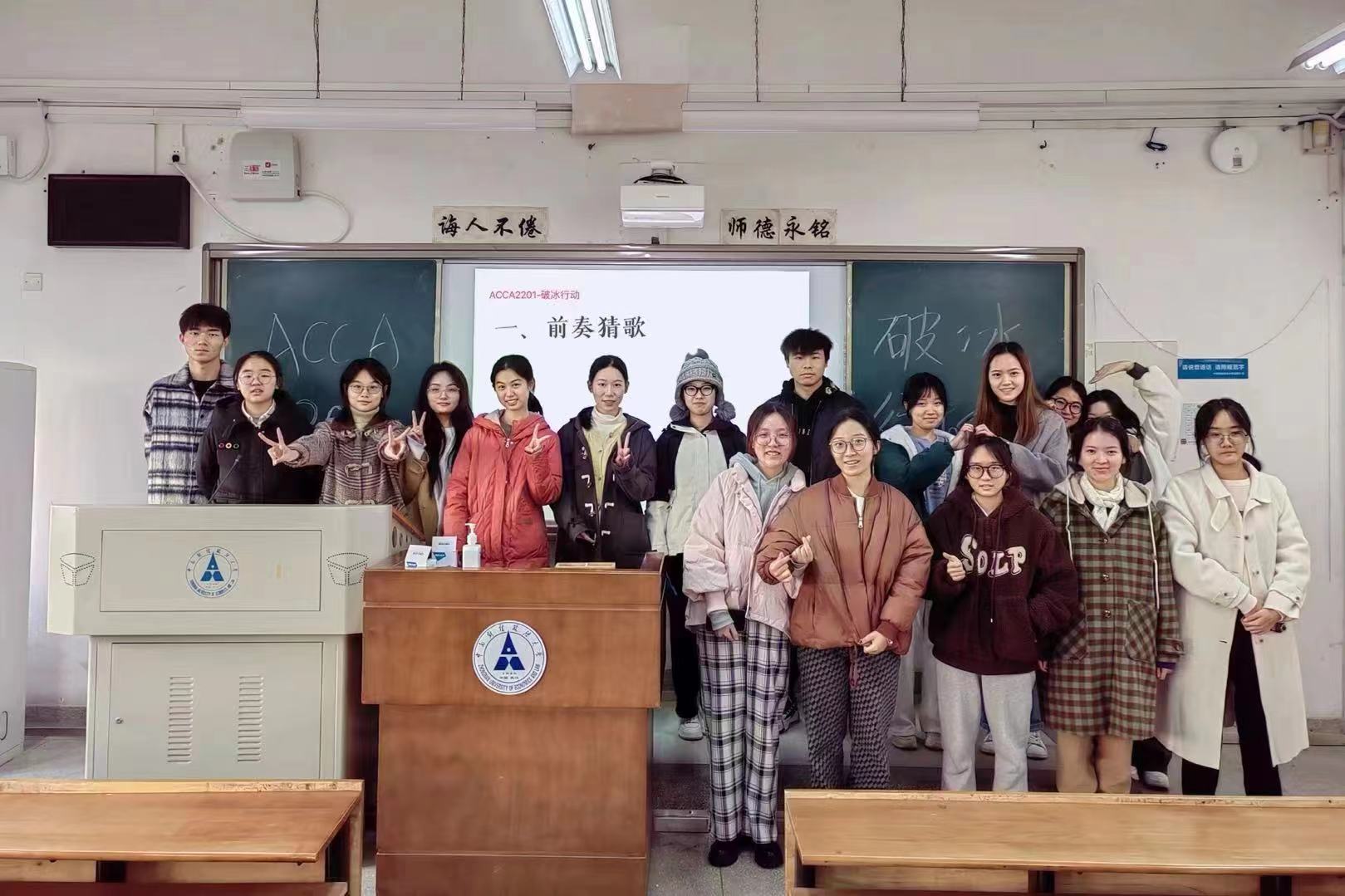 CPAC2201班通过“k歌比赛”“拍7令小游戏”“谁是卧底”等娱乐活动,增进了同学们对彼此的了解,提升了班级凝聚力,达到了良好的效果;同时为生日寿星创造了一段温馨、愉快的回忆,致力于让每位班级同学都感受到集体的温暖。CPAC2201的同学们在这个欢笑充沛的夜晚共度了难忘、美好的团建时光!财智2201班的同学们在文澜105教室开展了破冰班会。现场同学们热情洋溢、积极参与。朗朗笑声打破了距离感,大家在互动中增进了对彼此的了解和信任,增添了熟悉感。在轻松愉快的破冰班会中,大家从陌生走向熟悉,从熟悉走向团结。CIMA班策划了一场别开生面的活动,让已经熟悉的班级成员有机会尽情释放活力。同学们积极响应,在游戏中愉快互动,在交流里彼此敞开心扉。这次团建不仅加深了同学之间的友情,更让整个班级散发出更浓厚的凝聚力。ACCA2201班在文澜301举办破冰行动,开展了“前奏猜歌”“传声筒”“连字成词”等游戏,活动最后大家齐唱《你曾是少年》,每位同学的积极性和参与度高涨,活动圆满成功。