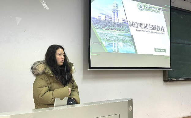 杨柳老师从多个方面展开诚信考试主题讲授。她详细介绍了相较于初高中,大学阶段考试安排的变化,并结合《中南财经政法大学全日制学生考试违纪舞弊处理办法》向同学们普及了涉嫌作弊的违规行为类型及相应处分,同时还介绍了获取考试安排信息、申请缓考的方式方法,全体同学现场签署了《考生诚信承诺书》。接着,杨柳老师就冬季用电安全、防范电信诈骗、放假路途安全、健康关注强调了冬季相关安全事宜。