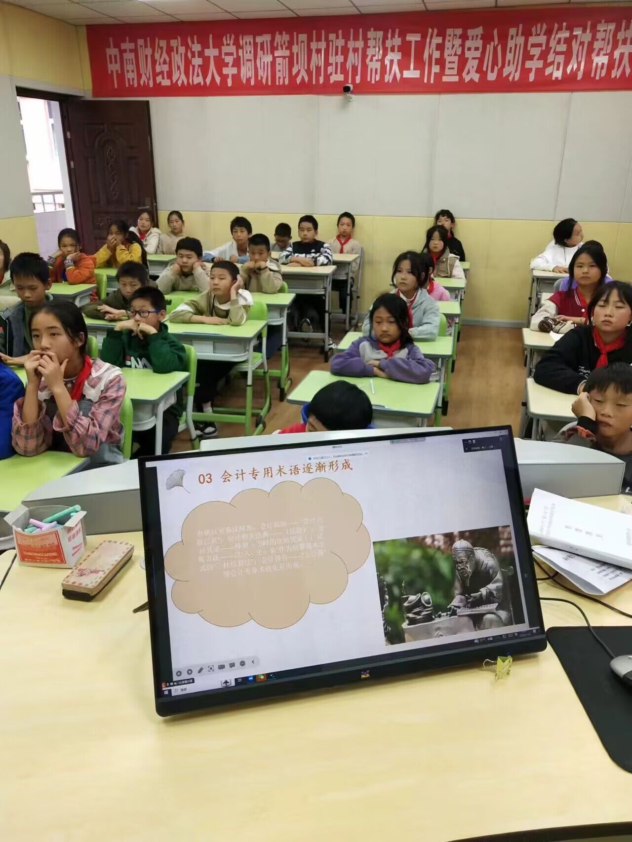 在这次支教活动中,讲师以生动有趣的方式向箭坝小学的学生们介绍了会计文化史。他通过讲解和展示相结合的方式,让学生们更加深入地了解了中国文化的魅力和独特性。这次活动不仅拓宽了箭坝小学学生的视野,也增强了他们对会计的认识和了解。