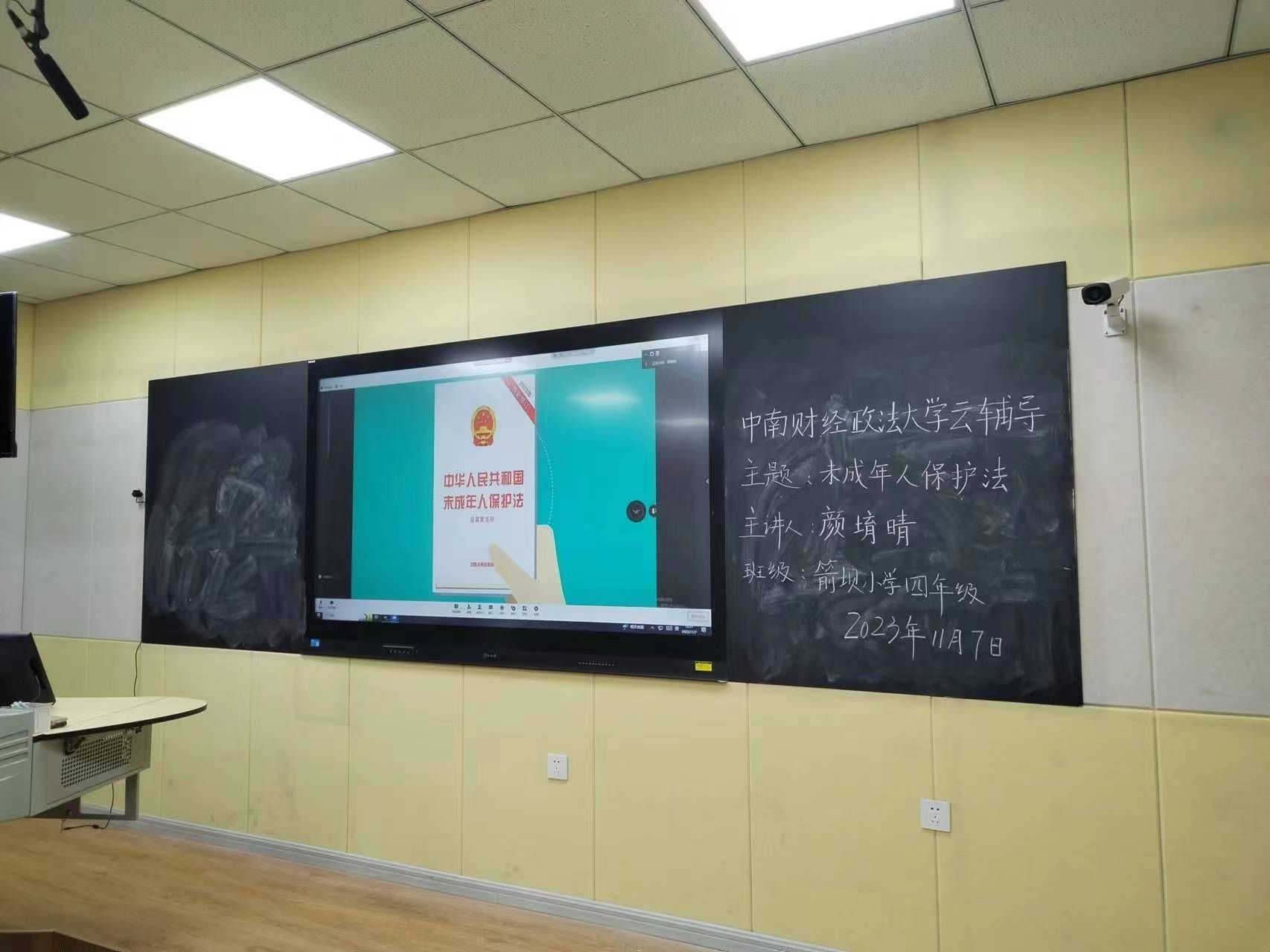(通讯员 王菁怡)为了普及未成年人保护法的相关知识,增强对未成年人的保护,2023年11月7日下午,中南财经政法大学会计学院“鸿雁西南飞,扶智薪火随”教辅云课堂项目如期开课。云课堂四年级的小组成员颜堉晴借助腾讯会议平台,为云南省箭坝小学四年级师生开展了以“未成年人保护法”为主题的“云课堂”教学活动。