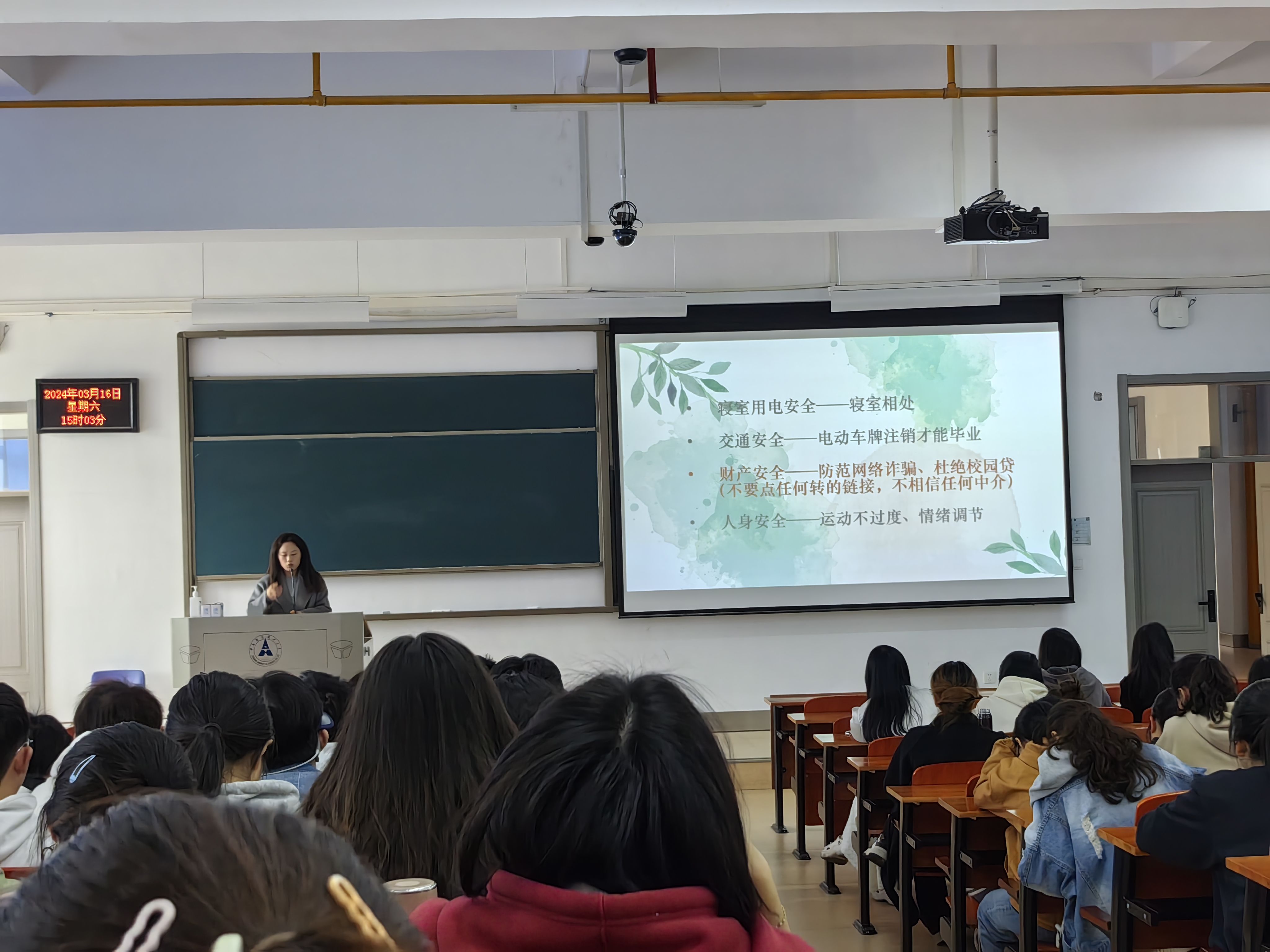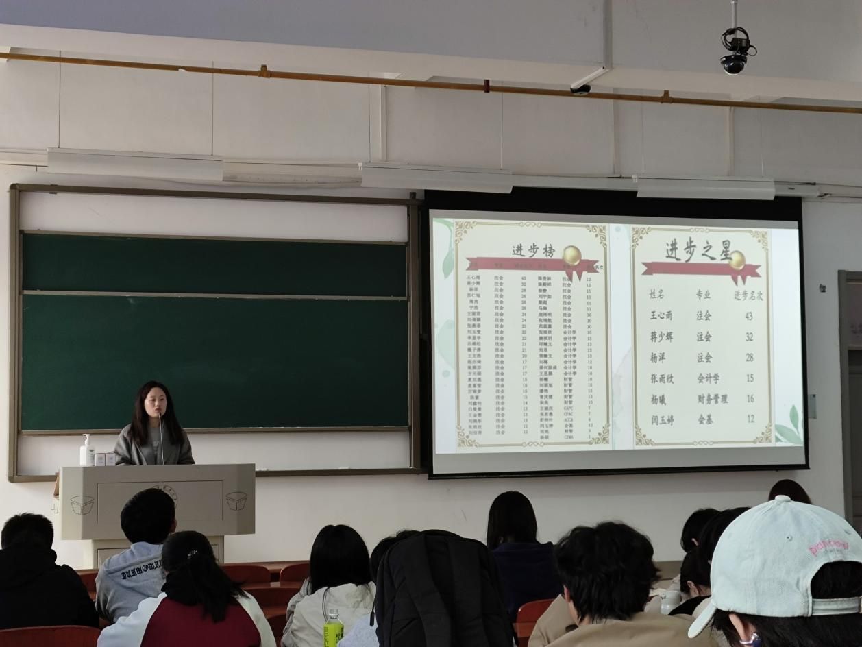 在学业预警环节,黎老师向大家展示了上学期期末考试的成绩总结,对成绩优异的班级提出表扬,对成绩不理想、挂科人次较高的班级做出提醒。黎老师希望我们在新学期以更加积极认真的学习态度,更加饱满热情的生活态度,开启新学期的征程。