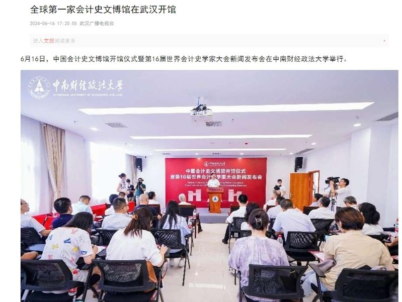 武汉广播电视台:全球第一家会计史文博馆在武汉开馆
