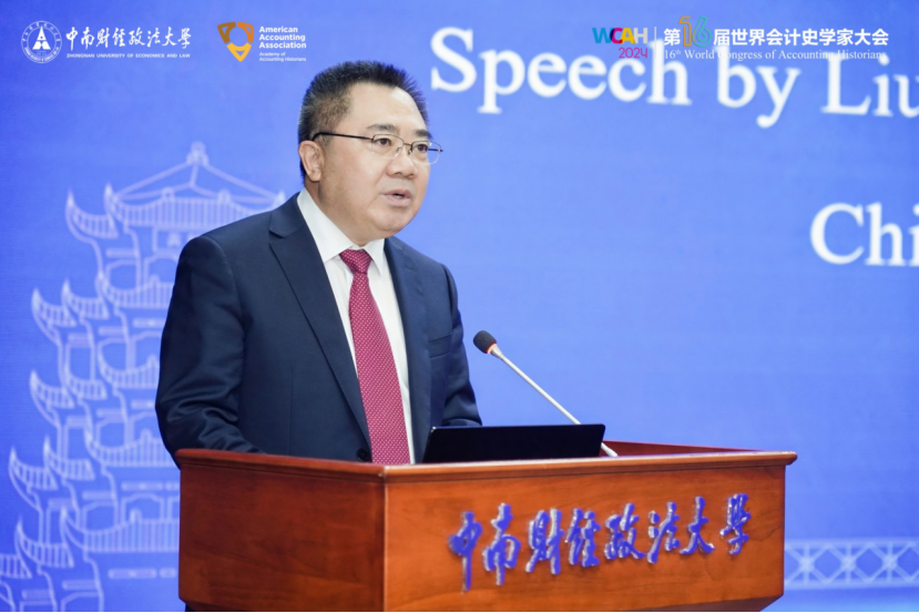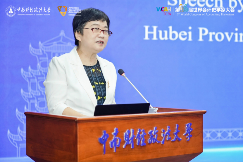 中南财经政法大学校长、党委副书记杨灿明在致辞中指出,作为中国唯一承办第16届世界会计史学家大会的高校,中南大深感荣幸,无比骄傲。学校多年深耕会计史研究,国际知名会计史学家郭道扬教授历时十余年、独立手写完成的三百万言鸿篇巨制《中国会计通史》,填补了世界会计史的研究空白,巩固了中国在全球会计史研究领域的领跑地位。期望以本次大会为契机,让世界领略中华文化的独特魅力,向世界发出“担负起新的文化使命”的时代强音。