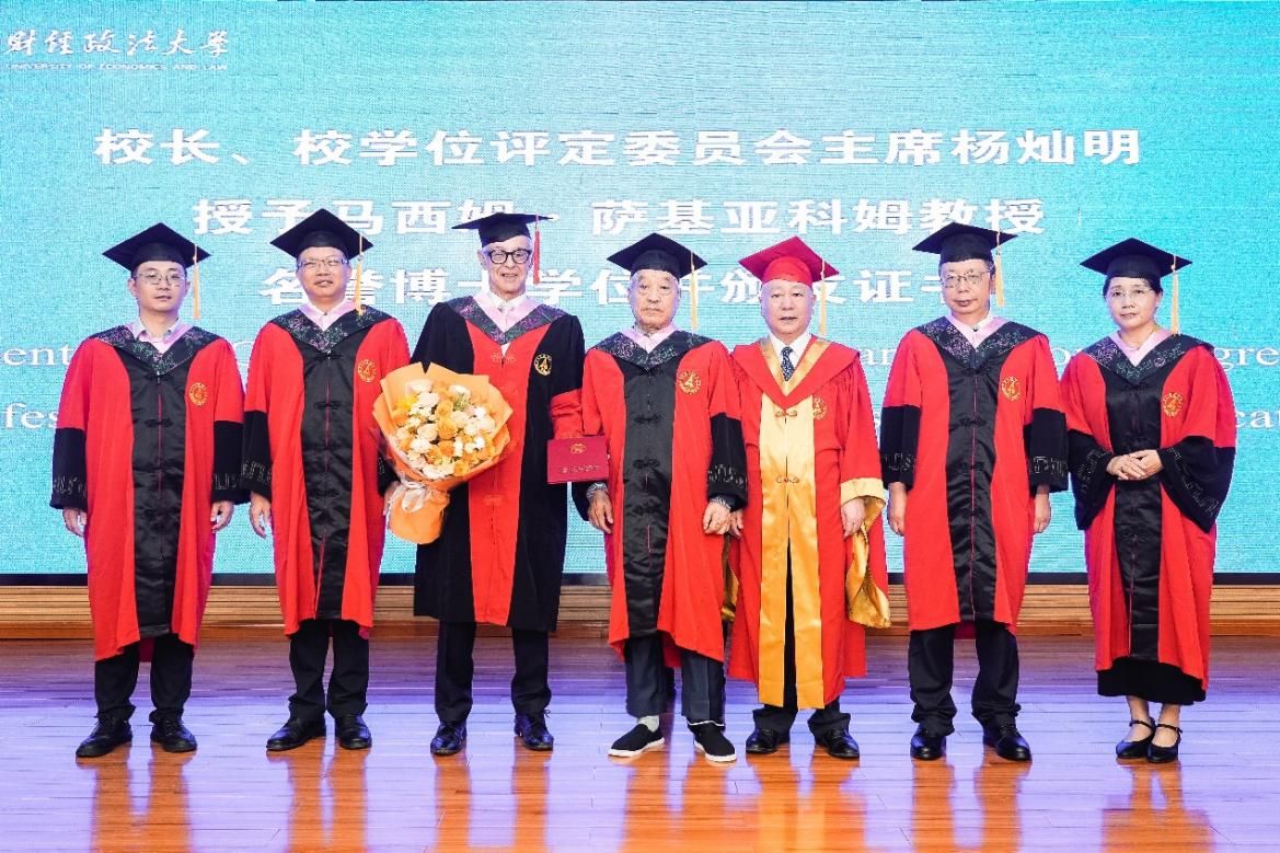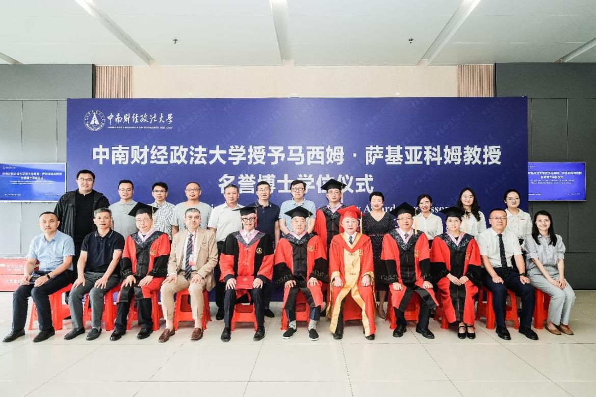 6月24日上午,中南财经政法大学在文澴楼同声传译会议中心隆重举行马西姆·萨基亚科姆教授(Massimo Sargiacomo)名誉博士学位授予仪式。