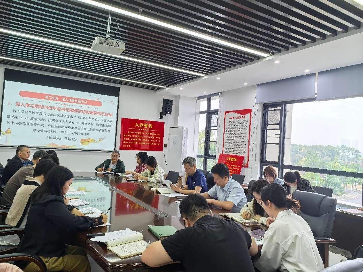 在理论学习环节,首先由孙紫微同志带领大家深入学习习近平总书记在庆祝新中国成立75周年招待会、庆祝全国政协成立75周年大会等上的重要讲话精神以及给高校师生、产业工人等回信精神。随后,赵达骋同志带领大家深入学习习近平同志《论教育》和习近平总书记在全国教育大会上的重要讲话精神。陈楠同志带领大家进行“乡村振兴”主题学习,重点学习了习近平总书记在甘肃考察时的重要讲话精神。