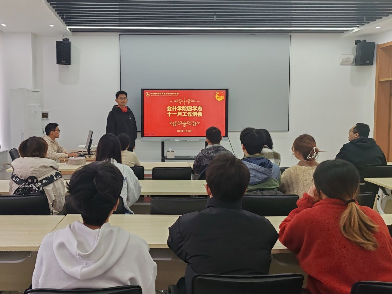 新闻网讯(学生通讯员 黄婧妍 摄影 郑博文)11月20日下午12:45,会计学院团学志十一月工作例会准时在文瀚楼401会议室召开。会计学院团委书记赵达骋老师以及团学志各部门负责人参与本次会议。