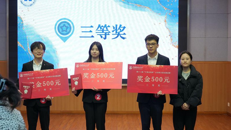 “济世杯”之“中南大会院杯”企业联合面试挑战赛是会计学院“财会就业文化节”的核心活动之一。该比赛不仅为学生提供了展示自我的平台,也为学校和企业之间架起了一座直接沟通的桥梁,为参与者争取到在会计师事务所等知名企业的实习机会奠定基础。