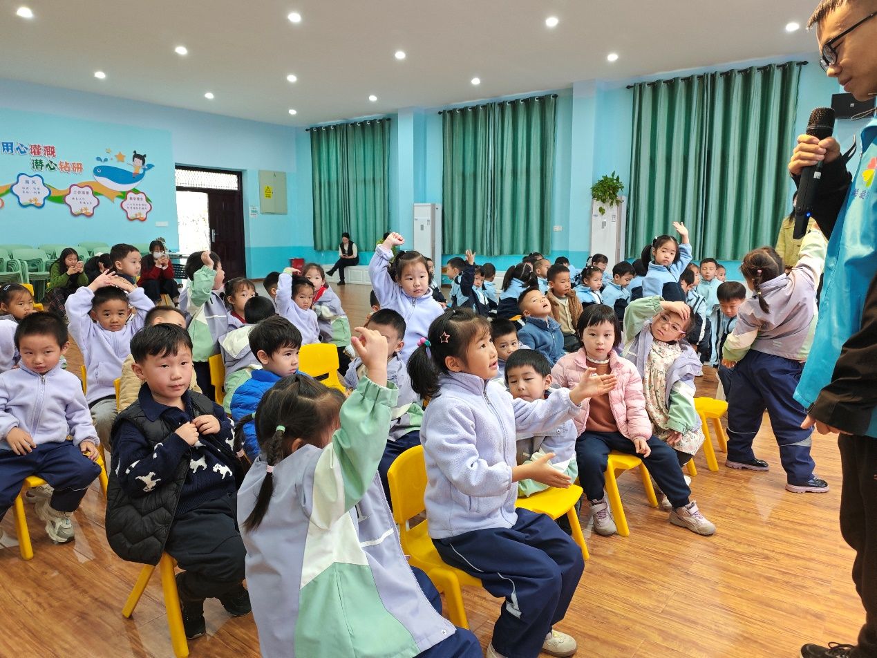 在知识传授环节结束后,志愿者们组织了一场以“运动健康”为主题的互动游戏活动。通过展示各种运动姿势的卡片,例如跑步和坐姿,志愿者们引导小朋友们识别并选择正确的运动方式,以此培养他们良好的运动习惯。在互动过程中,小朋友们表现出极高的热情,并积极与志愿者分享自己对正确跑步姿势的新认识。