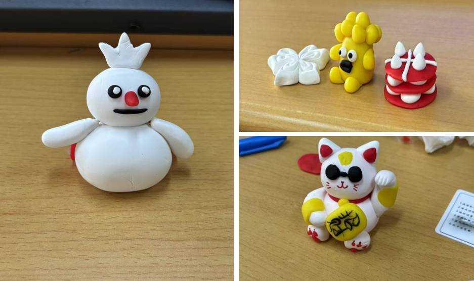 在实践环节,梦华服务队为参与者们提供丰富的面塑范本,并安排经验丰富的志愿者成员带领参与者们依照范本开始第一轮个人面塑创作。创作过程中,志愿者成员全程提供指导和帮助,确保每位参与者都能顺利完成作品。此外,志愿者成员还鼓励参与者发挥创造力和想象力,在面塑作品上添加自己独特的元素和风格,赋予面塑作品别样的生命力。在第二轮合作环节,梦华服务队建立特色奖励机制,将面塑制作环节中存在的问题设置成有奖问答,参与者通过答题获取更多的面塑材料,助力后续创作,现场气氛也因此进入高潮。