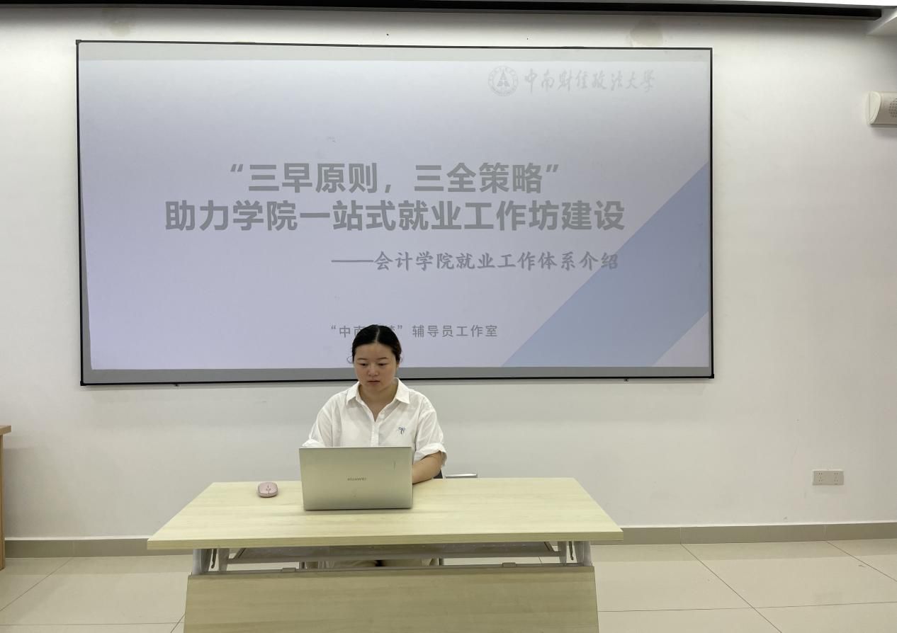 随后,杨柳老师系统介绍了学院以“三早原则,三全策略”为核心的特色就业工作体系。“三早”即早规划、早引领、早帮扶:针对大一至大二学生开展职业规划讲座、经验分享等活动凝聚思想;大三至大四阶段通过简历指导、面试技巧培训等稳步引领。同时,学院以“三全”为支撑,通过全员化参与、全过程助力、全方位托底,形成无死角、全覆盖、高效率的就业协同育人体系,切实为学生就业赋能。
