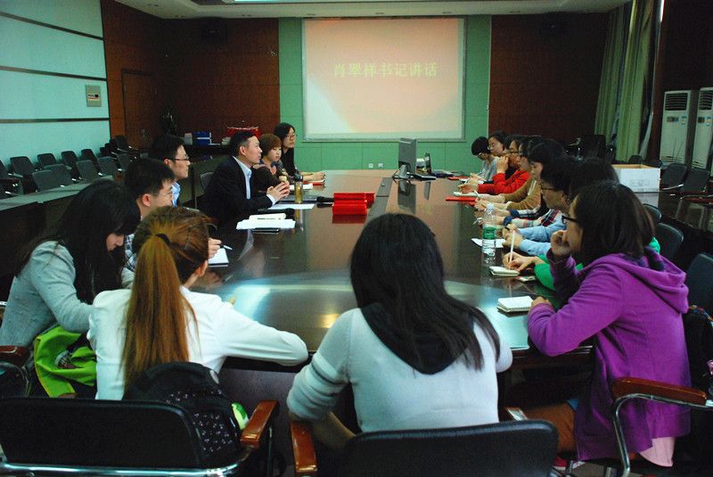 随后,肖翠祥书记发表讲话。他强调工作团成员应相互团结,互帮互助,共同把工作团带上新的台阶。他指出党建工作团是直属于会计学院党委,是具有开创性的工作团体,并表示这个团体是学生党员中的先锋队,团内成员应充分发挥党员的先锋模范带头作用,为学院的学生党员做出表率,并进一步增强党员与同学们之间的凝聚力。之后,肖书记对工作团的日常工作提出了一些建设性意见:一是各部门之间应形成例会制度,方便部门之间的事务协调;二是做好学院党建网站的建设与日常维护工作,保证网站内容的时效性;三是每学期应针对全院党员开展实践教育活动,活动内容应与学生生活息息相关,并具有鲜明的主题和思想深度;四是工作团成员应热爱这个团体,积极工作,并对工作团提出一些具有建设性的建议;五是工作团成员应正确处理学习与工作之间的关系,提高效率与质量。