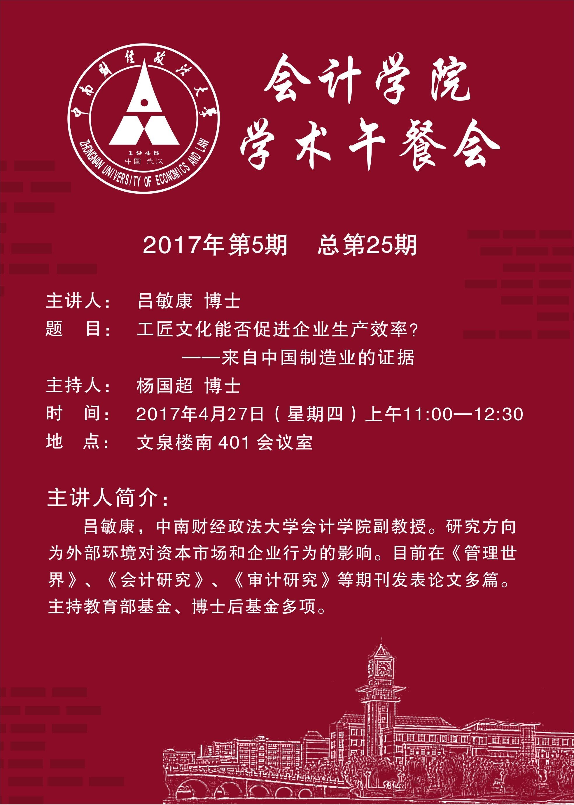会计学院学术午餐会第25期公告