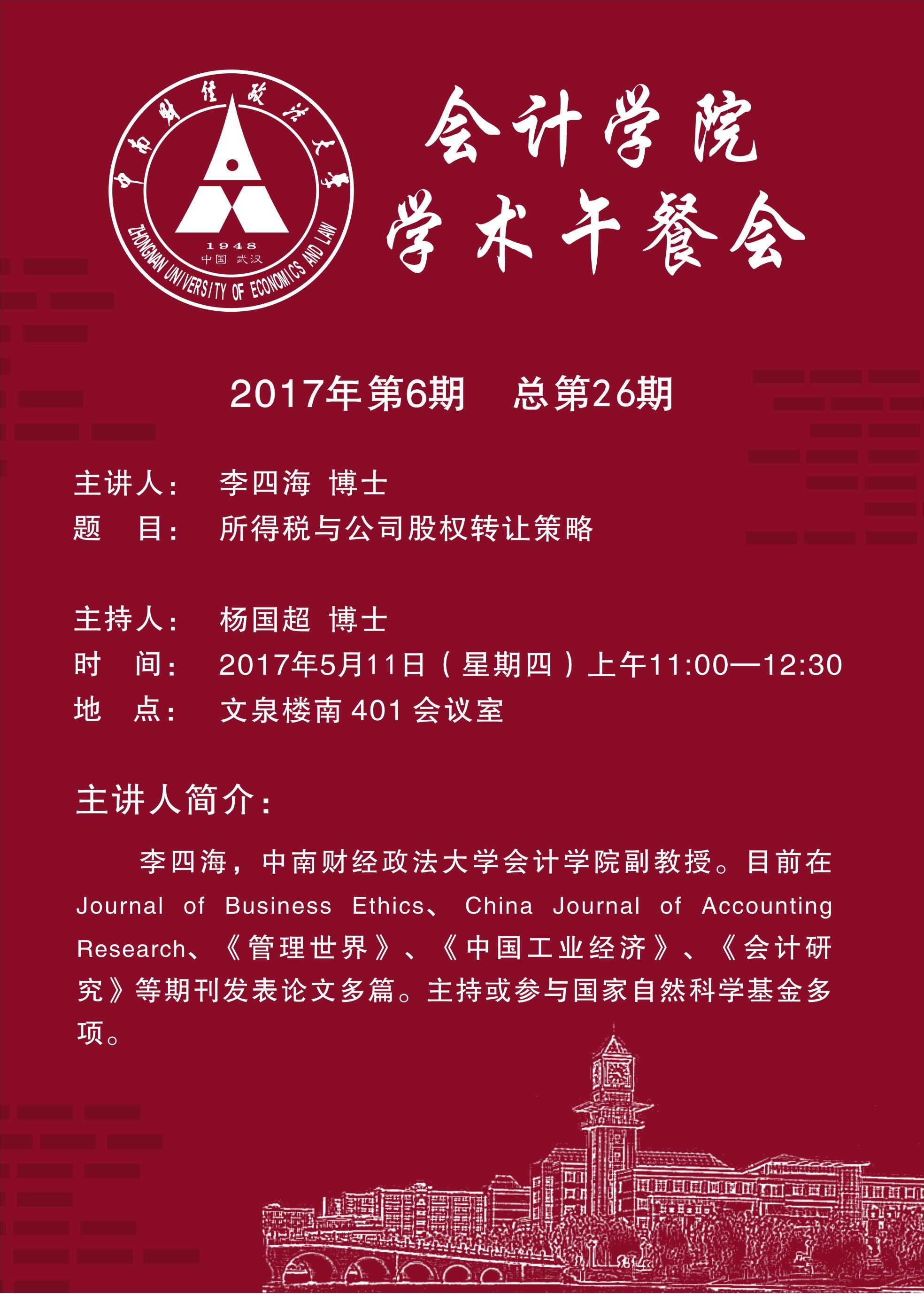 会计学院学术午餐会第26期公告