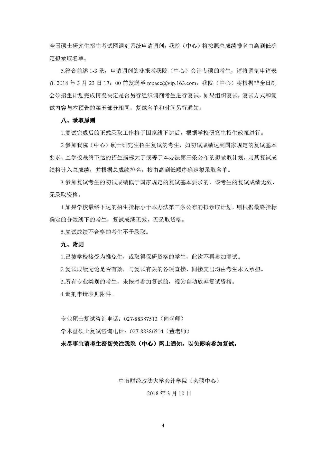 中南财经政法大学会计学院(会硕中心)2018年硕士研究生招生复试工作预告