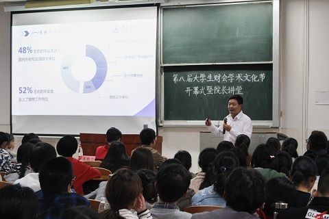 10月25日下午四点,第八届大学生财会学术文化节开幕式暨中南大讲堂之院长讲堂活动于文瀚楼501教室举行。本次中南大讲堂邀请到了会计学院院长、博士生导师张敦力教授担任主讲嘉宾,为18级新生带来主题为“大学更需要苦学和巧学”的讲座。学办主任孟曰老师、分团委书记张昭妍老师,分团委副书记杨少同老师参加本次活动。