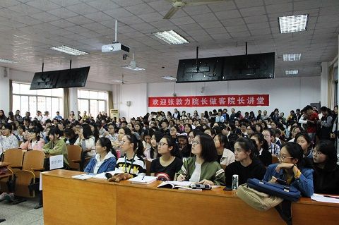 首先,主持人张昭妍老师对院长的到来表示热烈欢迎,并向大家介绍了张院长的任职经历、学术科研以及所获成就。接着在热烈的掌声中,讲座正式开始。本次讲座以“大学更需要苦学和巧学”的主题,从立德树人、专业导向、求真创新、学习氛围四个角度展开阐述。在立德树人方面,张院长围绕为谁培养人、培养什么样的人、如何培养人,提出要坚决贯彻习近平总书记高等教育“四个服务”的发展方向,培养具有全人、专才、创客特质的新型会计人才。同时,张院长从大学生学术道德规范教育引申到职业道德教育,希望同学们以德律己,以德治学,树立诚信品质,做品德高尚的人。在专业导向方面,张院长针对同学们关心的财会人才转型问题,提出要紧跟时代潮流,明确自身定位,通过综合途径寻求突破,为同学们指明了方向。最后,张院长强调同学们要勇于求真创新,敢吃学习之苦,找寻巧学之乐,跳出表面知识,形成有效的解题思维流程,同时要培养兼收并蓄、博采众长、知行合一等能力。