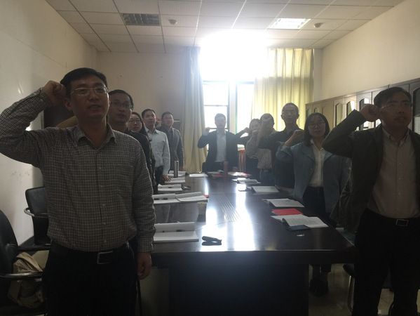 活动伊始,李四海书记带领同志们重温入党誓词,并学习了《中国共产党章程》第一章。支部全体成员现场缴纳2018年11月份的党费。
