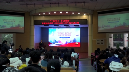 11月15日下午,“不忘初心、牢记使命”大学生微党课比赛在文潭楼一楼报告厅顺利举行。2015级本科生党员杨朝锐同志代表会计学院参加此次比赛,并以“革命烈士的‘红色家书’”这一主题微党课夺得了本次比赛的二等奖。校党委副书记王文贵、党委组织部、党委宣传部、党委学工部、党委研工部、校团委等部门的相关负责人出席活动并担任评委,来自各学院的学工干部、学生党员以及入党积极分子等近300名师生到场观摩。