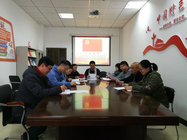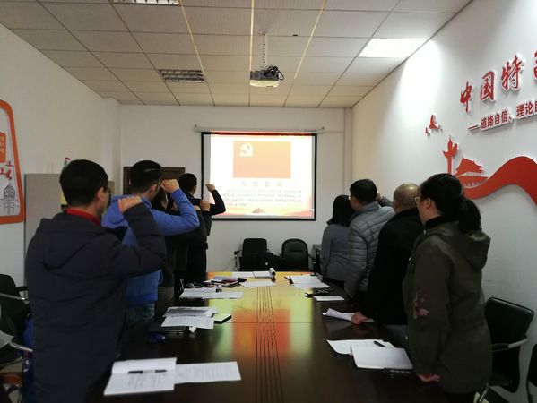 第一个环节,由支部书记史永同志带领支部成员面对党旗重温入党誓词;支部党员聂曼曼老师带领大家诵读党章第六章《党的干部》;支部成员现场缴纳1月份的党费。
