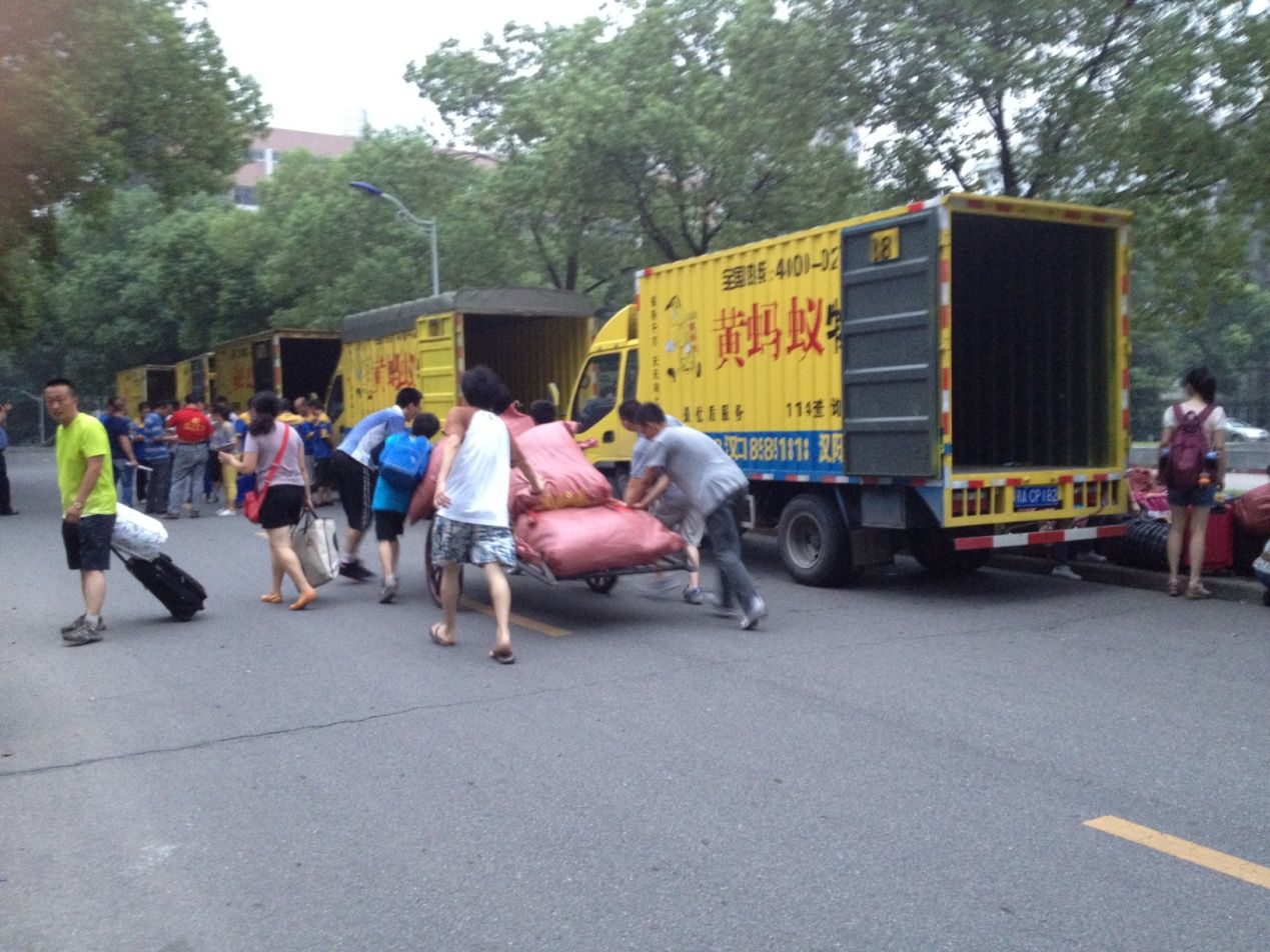 2013年8月26日凌晨6:10分,随着搬家公司第一辆货车满载学生行李顺利从首义校区开往南湖校区,我院2012级本科生跨校区搬家工作拉开大幕。为保证我院760余名2012级学生安全有序文明完成搬家工作,学院领导高度重视。学院张龙平院长、党委肖翠祥书记多次对学院搬家工作做出指示表示关怀。党委王延副书记带领学院学生工作办公室全体成员假期前后先后多次召开专门会议研究商讨搬家工作,讨论制定了详细周密的搬家工作方案,做到各个环节丝丝入扣,严密衔接,毫无纰漏。从与搬家公司联系到学生分批分组;从首义校区出发时间地点到南湖校区行李安全等环节精细到人,责任到人。