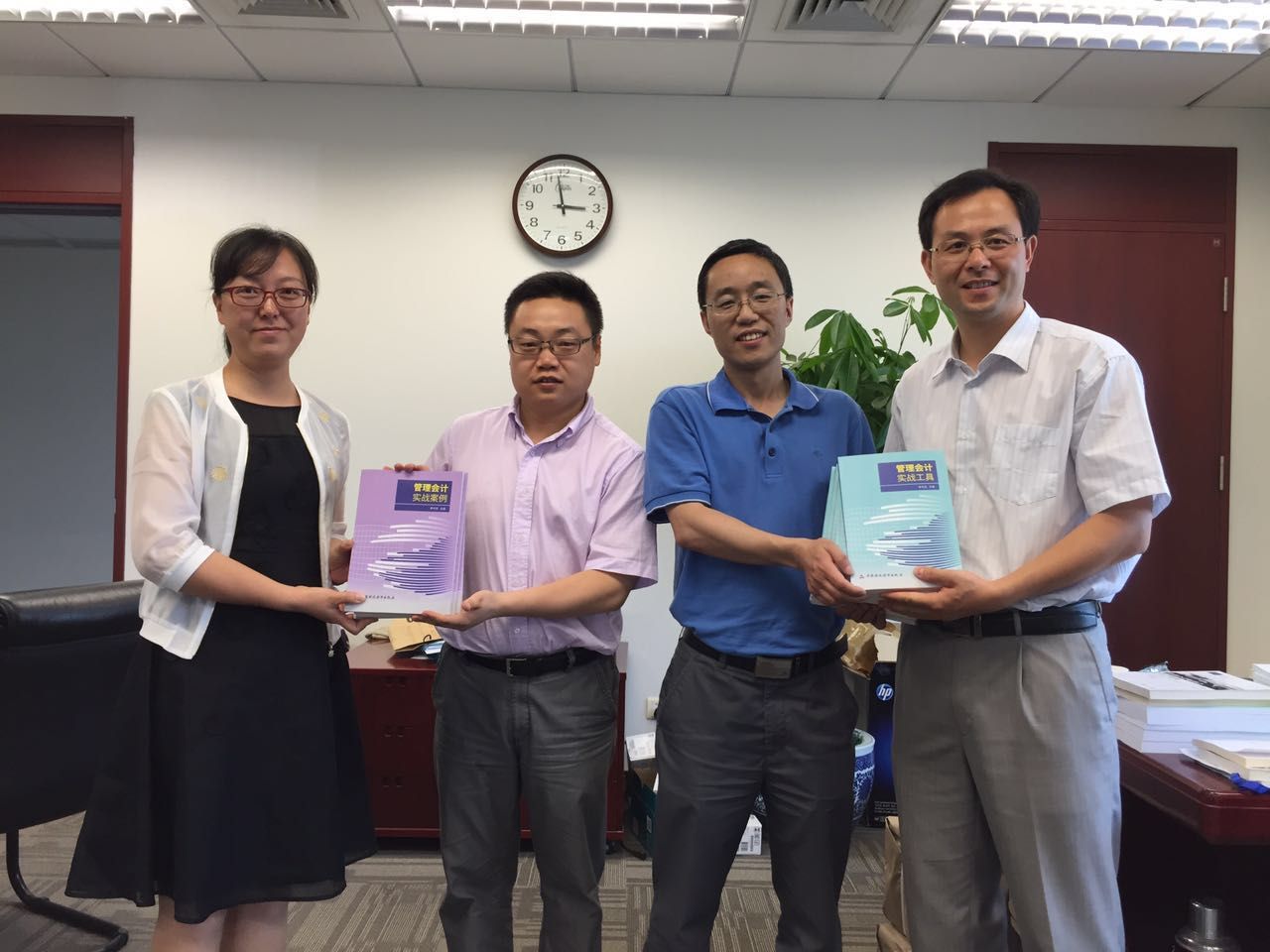 双方讨论了在本科生、硕士研究生、博士研究生等层次开设《管理会计》课程的体系构建的问题。兵器装备集团汤书平处长给蒲文燕主任、赵纯祥副主任进行了赠书,欢迎我院教师在《管理会计》教学中使用《管理会计实战工具》、《管理会计实战案例》中的相关案例。