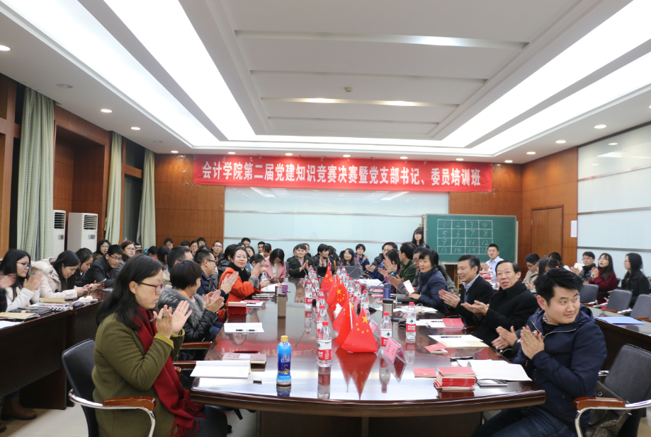 (通讯员 徐会超 史文静 赵文铮 摄影 占恬洋)2015年12月10日晚6点半,会计学院第二届党建知识竞赛决赛在文泉南401会议室举行。此次比赛由会计学院党委主办、院学生党建工作团承办,旨在贯彻落实党的十八届五中全会精神, 推进“三严三实”专题教育,贯彻执行《中国共产党廉洁自律准则》及《中国共产党纪律处分条例》 ,提高党员政治理论素养,加强支部建设,增强党员意识。