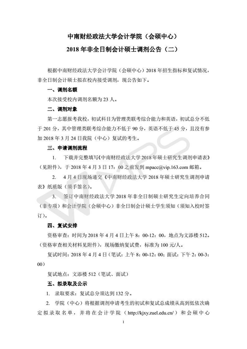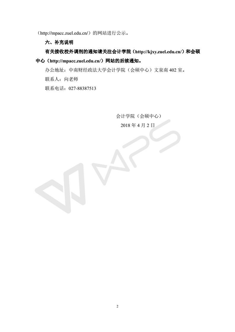 中南财经政法大学会计学院(会硕中心)2018年非全日制会计硕士调剂公告(二)