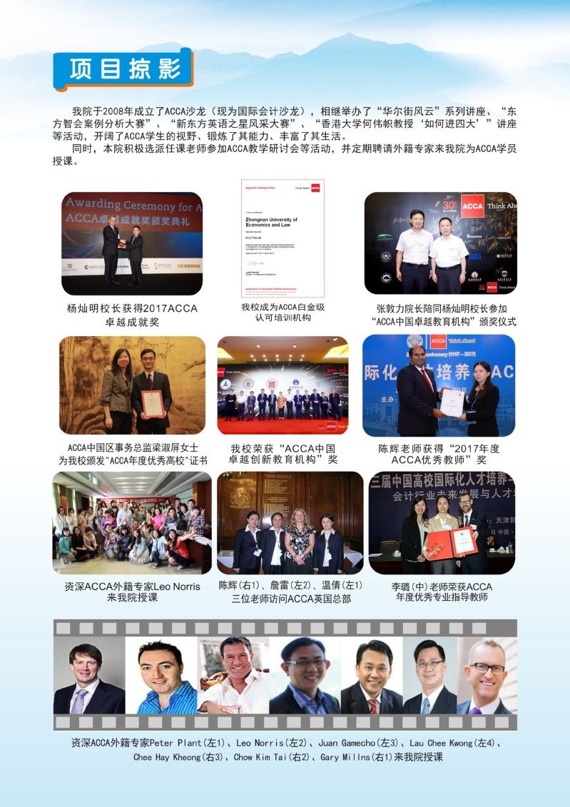 该项目是我校与ACCA自1994年开始共同举办的校际合作项目,经学校批准,会计学院于2005年正式开设ACCA班。该班采用“ACCA体系”、“双教学”和“多证书”的合作与交流模式办学。