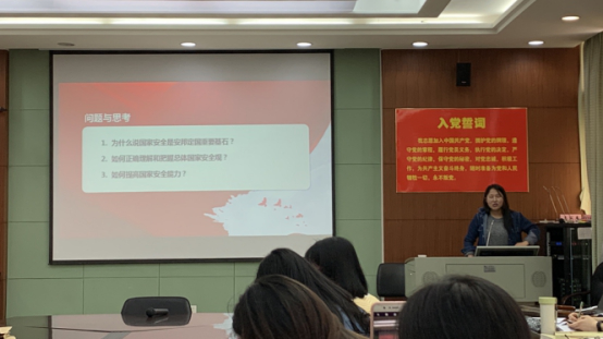 随后,王岚同志和徐春美同志带领大家进行了主题一和主题二的学习,在学习了《习近平新时代中国特色社会主义思想三十讲:第二十三讲坚持总体国家安全观》、《习近平关于总体国家安全观论述摘编:坚持总体国家安全观》、《习近平总书记关于青年学生成长成才重要论述摘编》等文件之后党员同志们就学习内容发表了各自的看法,同志们表示:国家的安全是我们安居乐业的基础,国家安全从来也不是一句空话。正如毛主席在《中国社会各阶级的分析》中所说“不可不注意团结我们的真正的朋友,以攻击我们的真正的敌人”,作为党员同志,我们应提高大局意识,共同努力,与危害国家安全的行为作斗争。