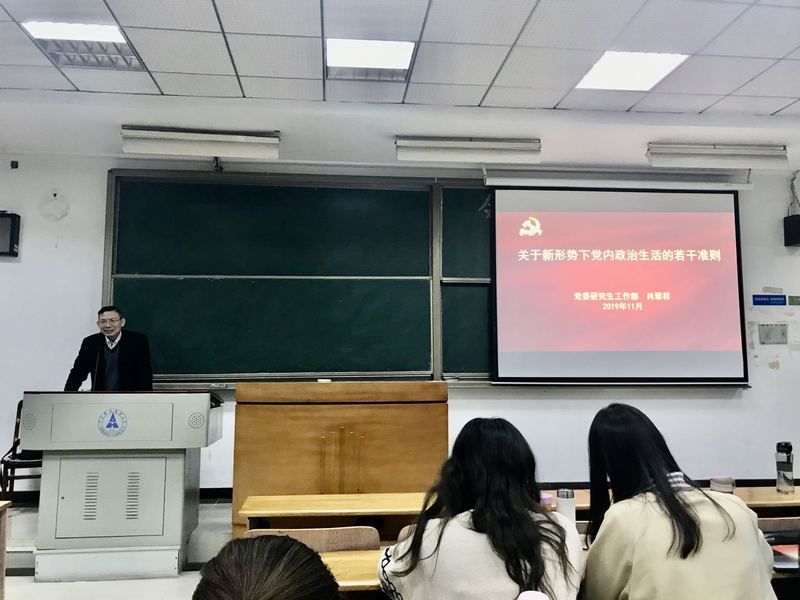 校党委研工部肖翠祥部长为大家带来了题为“党内政治生活准则”的报告。肖部长系统理论地为学员讲述了新形势下党内政治生活的若干准则,他指出,开展严肃认真的党内政治生活,是中国共产党的优良传统和政治优势。通过具体内容的展开,肖部长详细讲述了党内政治生活准则,使学员们对党内政治生活有了进一步的了解。