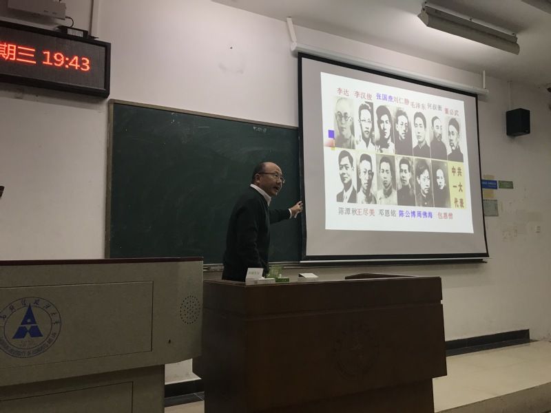 马克思主义学院院长龚先庆教授作了题为“中国共产党的初心使命”的报告。龚院长通过讲述“初心”一词的来源,生动讲述了共产党人的初心不是为自己谋福利,而是为了让千千万万的受苦大众解离苦海。龚院长通过“千年第一思想家”、“以苏为鉴”和“伟大的自我革命”的详细讲解,深刻阐述了共产党人的初心和使命。