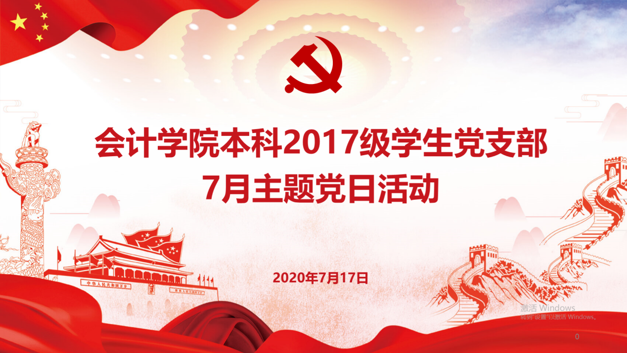 2020年7月17日,会计学院本科2017级学生党支部在线上开展七月份支部主题党日活动。活动由陈蕙章同志主持,本科17级支部的75位党员同志们全部参加了本次学习。全体成员完成了重温入党誓词、合唱中南财经政法大学校歌及诵读《中国共产党章程》总纲等内容后即展开了腾讯会议的线上学习。