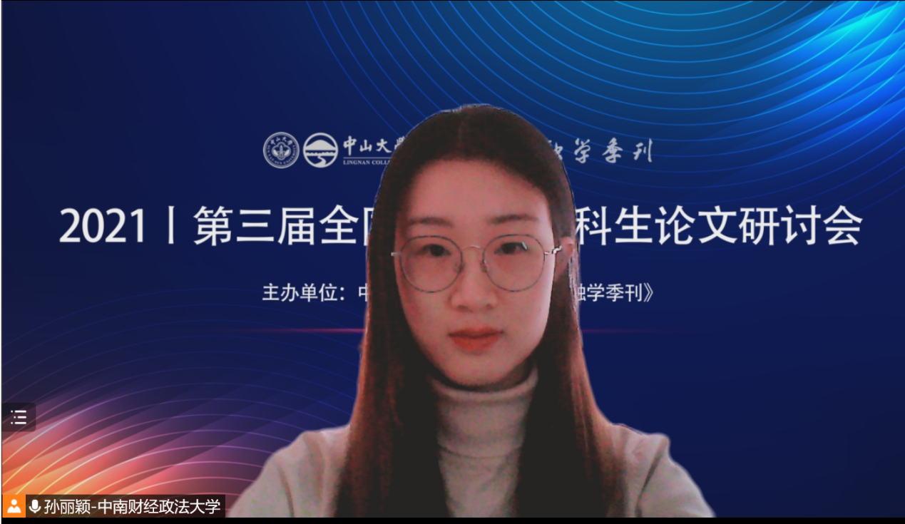 2021年12月19日,第三届全国经管类本科生论文研讨会成功举行。该研讨会由国内40余所知名院校共同发起,旨在为全国经管本科学子提供前沿学术讨论和科研成果展示的平台。本次会议由中山大学岭南学院、《金融学季刊》主办,并得到了《金融学季刊》、《中国会计学刊》、《会计与经济研究》、《南方经济》等期刊的支持。本届研讨会共收到来自南京大学、中山大学、中国人民大学、南开大学、中南财经政法大学等国内外知名高校的120篇投稿,经组委会专家的多轮评审,共15篇高质量论文入选,我院2018级本科生孙丽颖所撰论文脱颖而出,受邀在大会进行线上汇报。