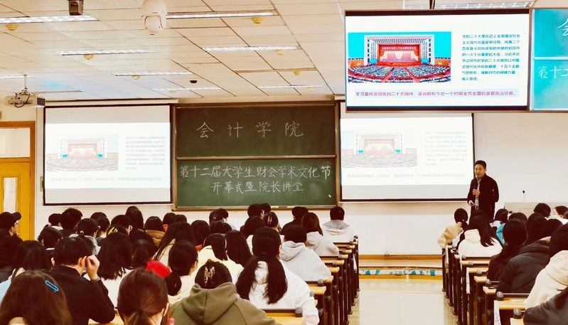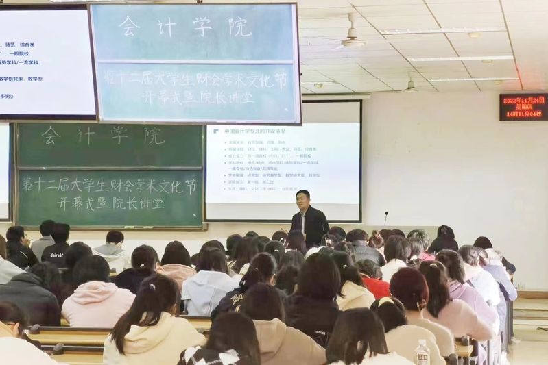 11月24日下午两点,第十二届大学生财会学术文化节开幕式暨“中南大讲堂”之院长讲堂在文润楼306教室顺利举行。本次活动由会计学院团委主办、会计学院学生会承办,会计学院院长、博士生导师张敦力教授担任主讲嘉宾,为22级本科新生带来主题为“踔厉奋发,勇毅前行,在中国式现代化新征程上展现财会担当”的讲座。活动由会计学院分团委书记陈俊华老师主持,2022级辅导员黎玥老师出席了本次活动。