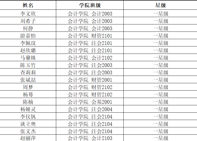 为深入学习贯彻党的二十大精神,传承并弘扬志愿服务精神,营造文明中南大浓郁氛围,进一步引领中南大学子践行社会主义核心价值观,经校团委、校志愿者协会研究决定开展“星级志愿者”表彰工作。现将会计学院“星级志愿者”入选名单公示如下,如有异议,请通过书面形式向会院志协反映。