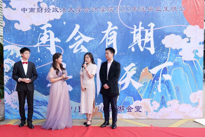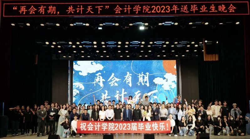 (通讯员 赵达骋 学生通讯员 杨舒然 许铭凌)5月11日晚六点三十分,“再会有期共计天下”会计学院2023年送毕业生晚会在南湖会堂隆重举行。会计学院党委书记殷修林,会硕中心主任兼副院长王昌锐,党委副书记兼行政副院长、纪委书记徐会超,副院长冉明东、李四海,党委副书记胡桂锬出席本次晚会,学院专任教师、行政教辅人员和学生代表参与本次活动。
