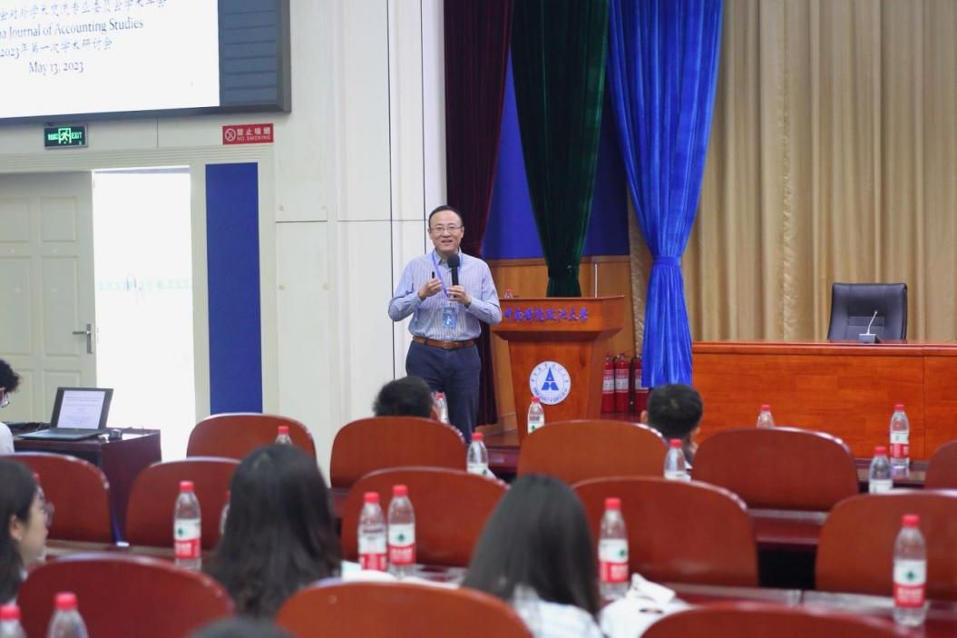 2023年5月13日,中国会计学会对外学术交流专业委员会学术年会暨CJAS 2023年第一次学术研讨会在我校成功举行。本次会议由中国会计学会对外学术交流专业委员会、中国会计学会China Journal of Accounting Studies编辑部主办,中南财经政法大学会计学院承办,是我校75周年学术校庆系列的重要活动之一。中南财经政法大学副校长周铭山,中国会计学会对外学术交流专业委员会主任委员张新民教授,《China Journal of Accounting Studies》杂志联合主编陈汉文教授,《会计研究》编辑部主任刘国强教授,中南财经政法大学会计学院院长张敦力教授、副院长李四海教授,香港中文大学张博辉教授,南方科技大学曾晓亮教授,下届会议承办方代表安徽财经大学学术副校长何贤杰教授以及来自各大高校的专家学者、论文汇报者等出席本次会议。会议开幕式由我校会计学院张敦力院长主持。