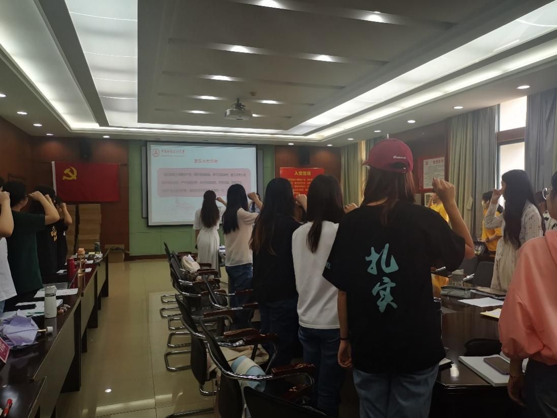 第三期“读·讲·行”主题教育暨6月主题党日活动由支部纪检委员王哲主持,全体党员同志参加。活动伊始,全体党员现场交纳党费并在王哲同志的带领下重温入党誓词。