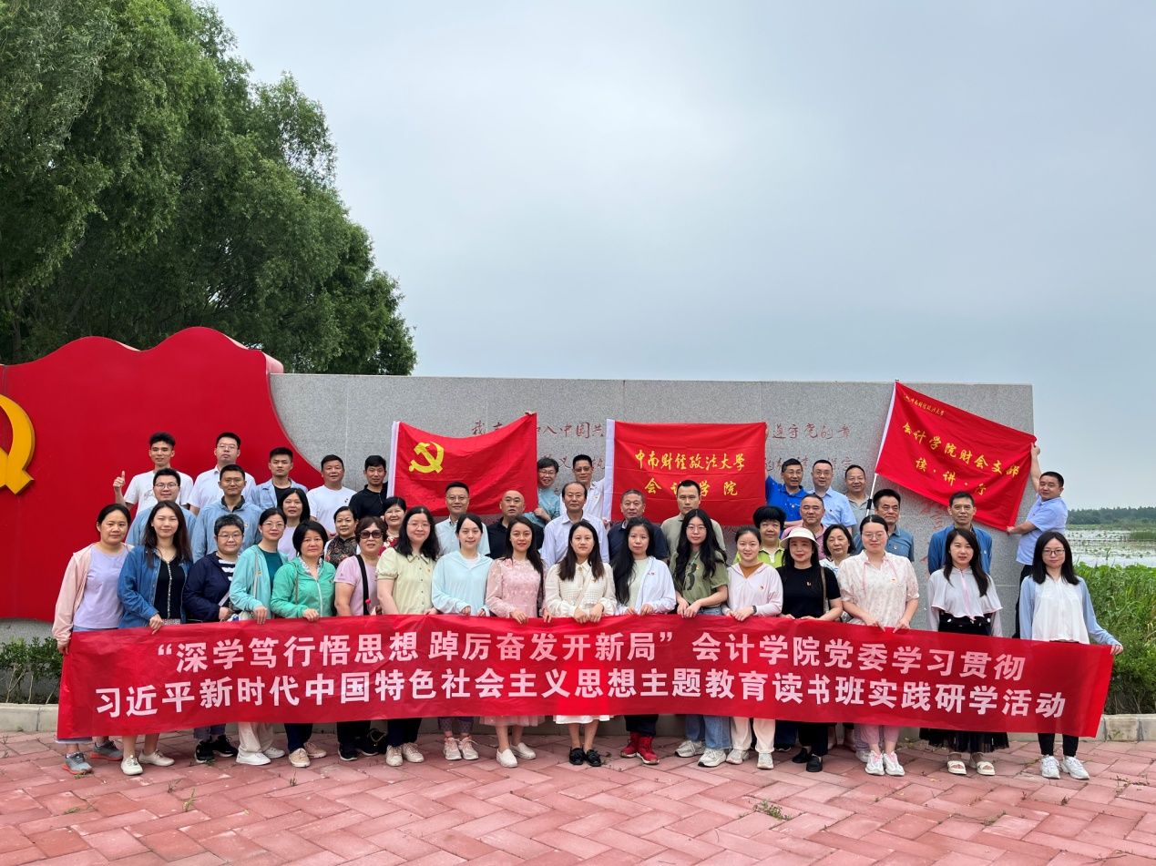 (通讯员 畅雅莉) 6月2-3日,会计学院党委组织赴湖北洪湖瞿家湾红色教育基地开展“深学笃行悟思想,踔厉奋发开新局”学习贯彻习近平新时代中国特色社会主义思想主题教育读书班实践研学活动,会计学院党委书记殷修林、副院长王昌锐、院党委副书记徐会超、胡桂锬等带队开展此次主题教育读书班实践研学活动。张龙平教授、张志宏教授等教师党员骨干、民主党派代表等40余人参加学习。