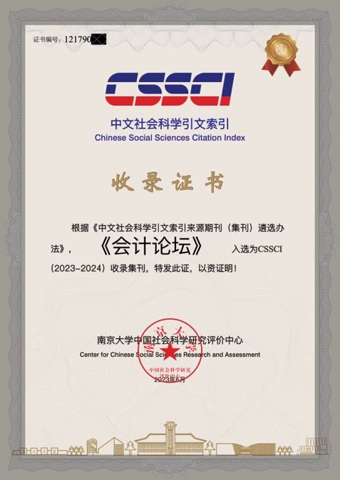 近日,由我校会计学院会计研究所主办的《会计论坛》(Accounting Forum)学术集刊,再次入选CSSCI(2023-2024)收录集刊目录。