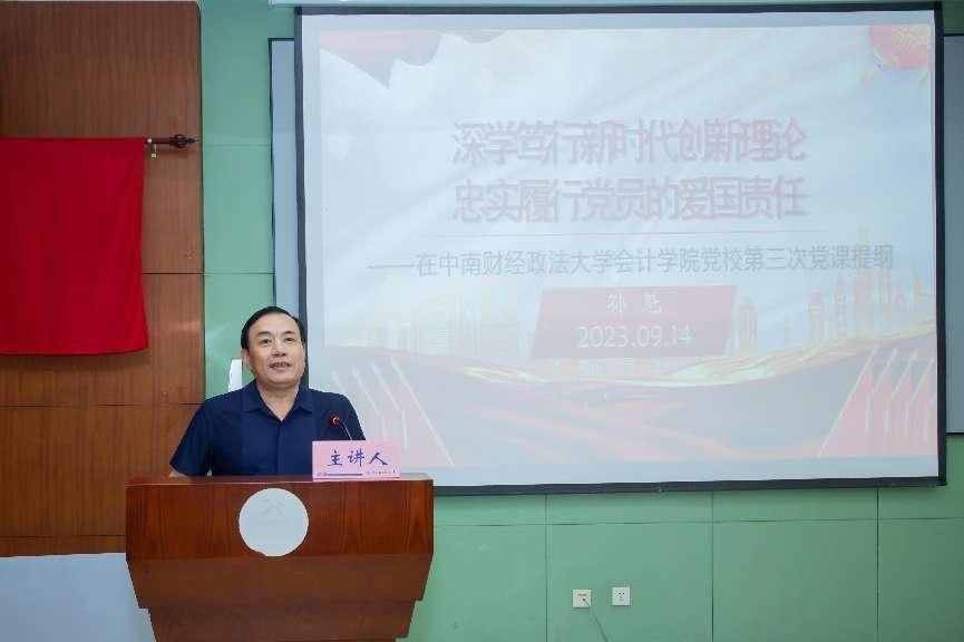 (通讯员 畅雅莉 南欣怡)2023年9月14日,会计学院文澜大讲堂·新时代研究生思政金课暨会计学院学生党员专题党课在中南财经政法大学文泉楼401举行。