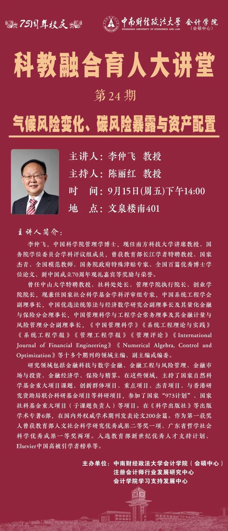 本次我们诚挚邀请中国科学院管理学博士李仲飞作为主讲嘉宾,为我们带来第24期科教融合育人大讲堂。
