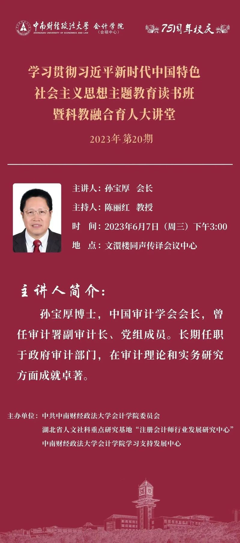 本次我们诚挚邀请中国审计学会会长作为主讲嘉宾,为我们带来第20期科教融合育人大讲堂。