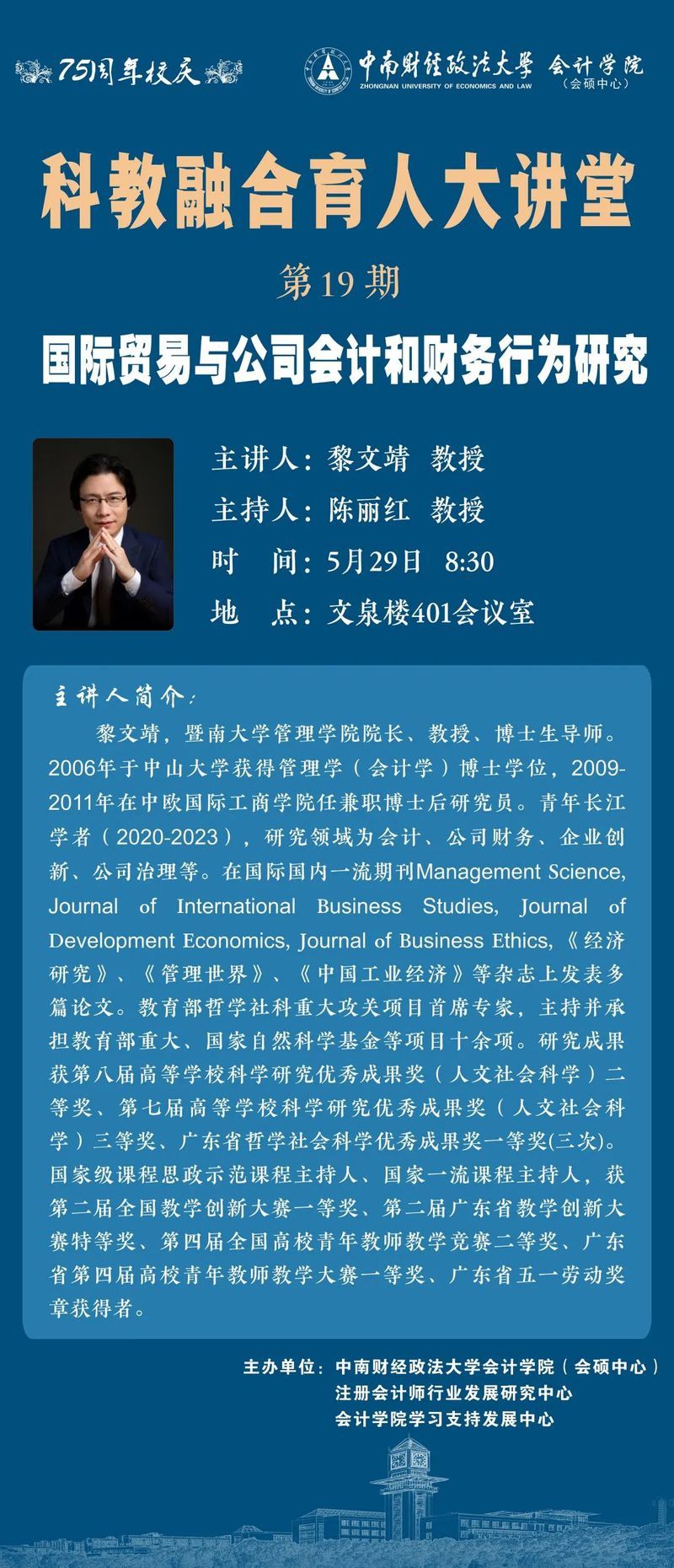 本次我们诚挚邀请暨南大学管理学院院章黎文婧教授作为主讲嘉宾,为我们带来第19期科教融合育人大讲堂。