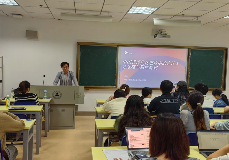 2023年10月27日晚19:00,领越锦城企业管理咨询有限公司总经理岳将先生受邀为我院专硕研究生讲授“中国式现代化进程中的会计人才战略与职业规划”专题讲座,本次讲座由会计学院会硕中心主任兼副院长王昌锐教授主持,2023级专硕研究生参加。