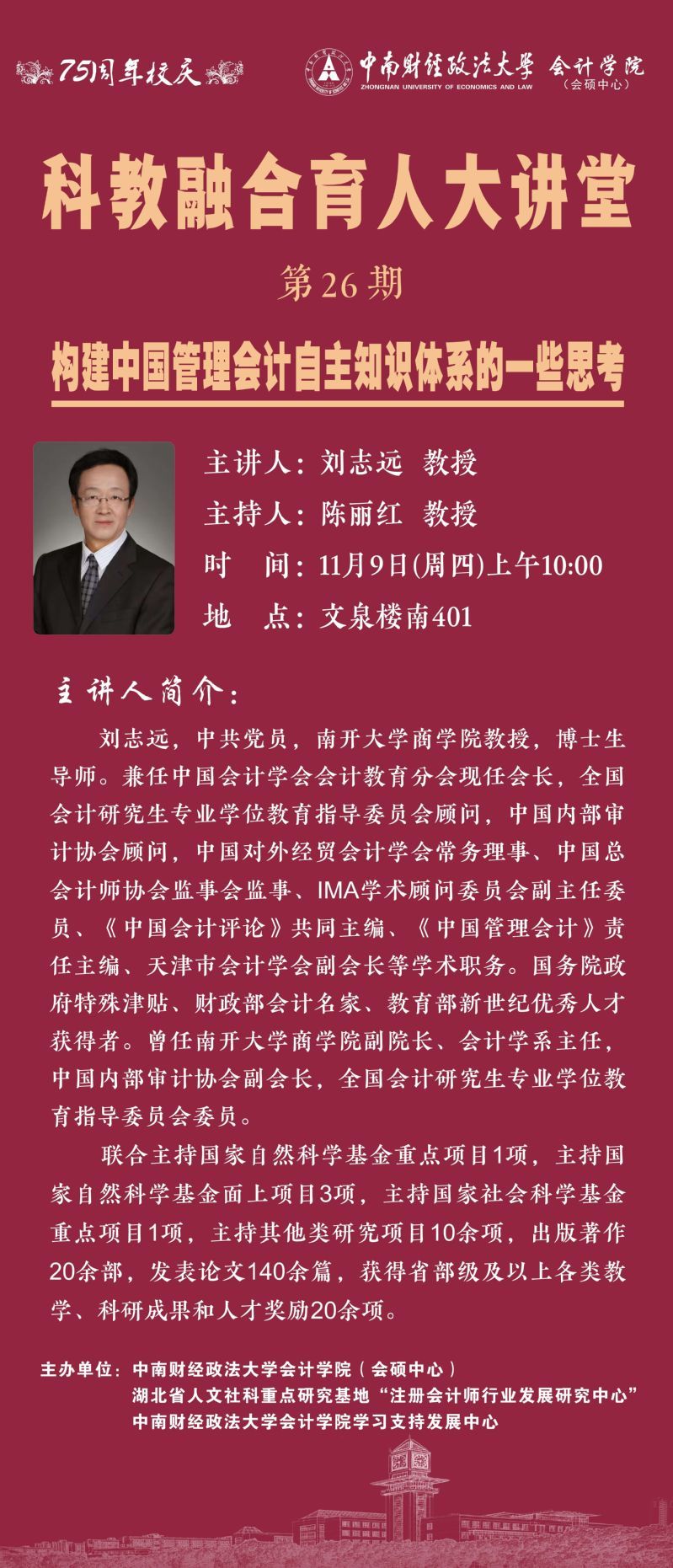 本次我们诚挚邀请南开大学商学院刘志远教授作为主讲嘉宾,为我们带来第26期科教融合育人大讲堂。