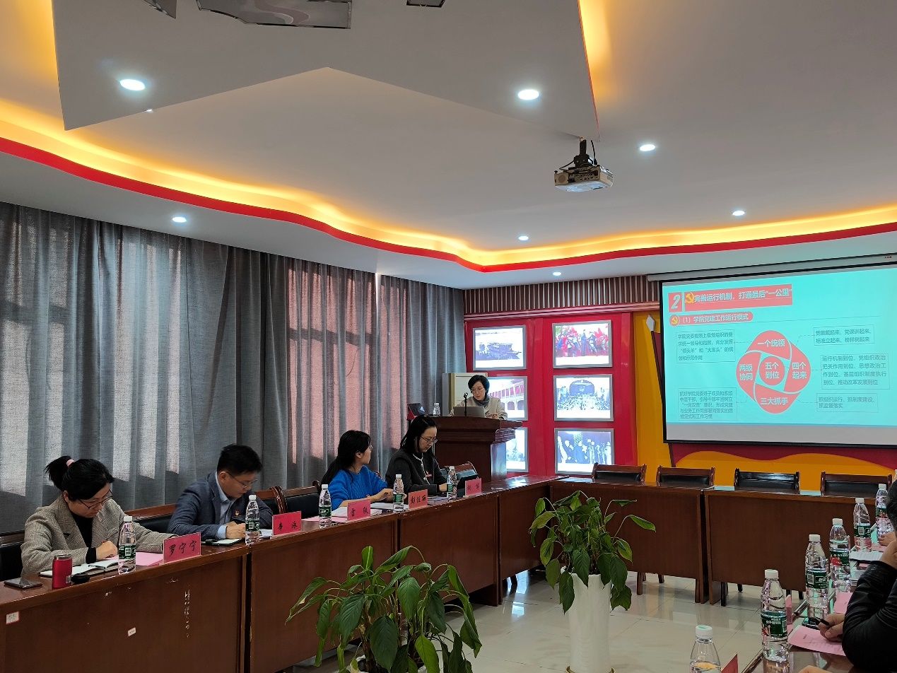 南昌航空大学测试与光电工程学院党委书记雷轶从“完善运行机制,打通最后‘一公里’”、“融合三个课堂,下好育人‘一盘棋’”、“发挥引领作用,绘就发展‘一张图’”三个方面对学院党委党建工作情况进行了介绍。