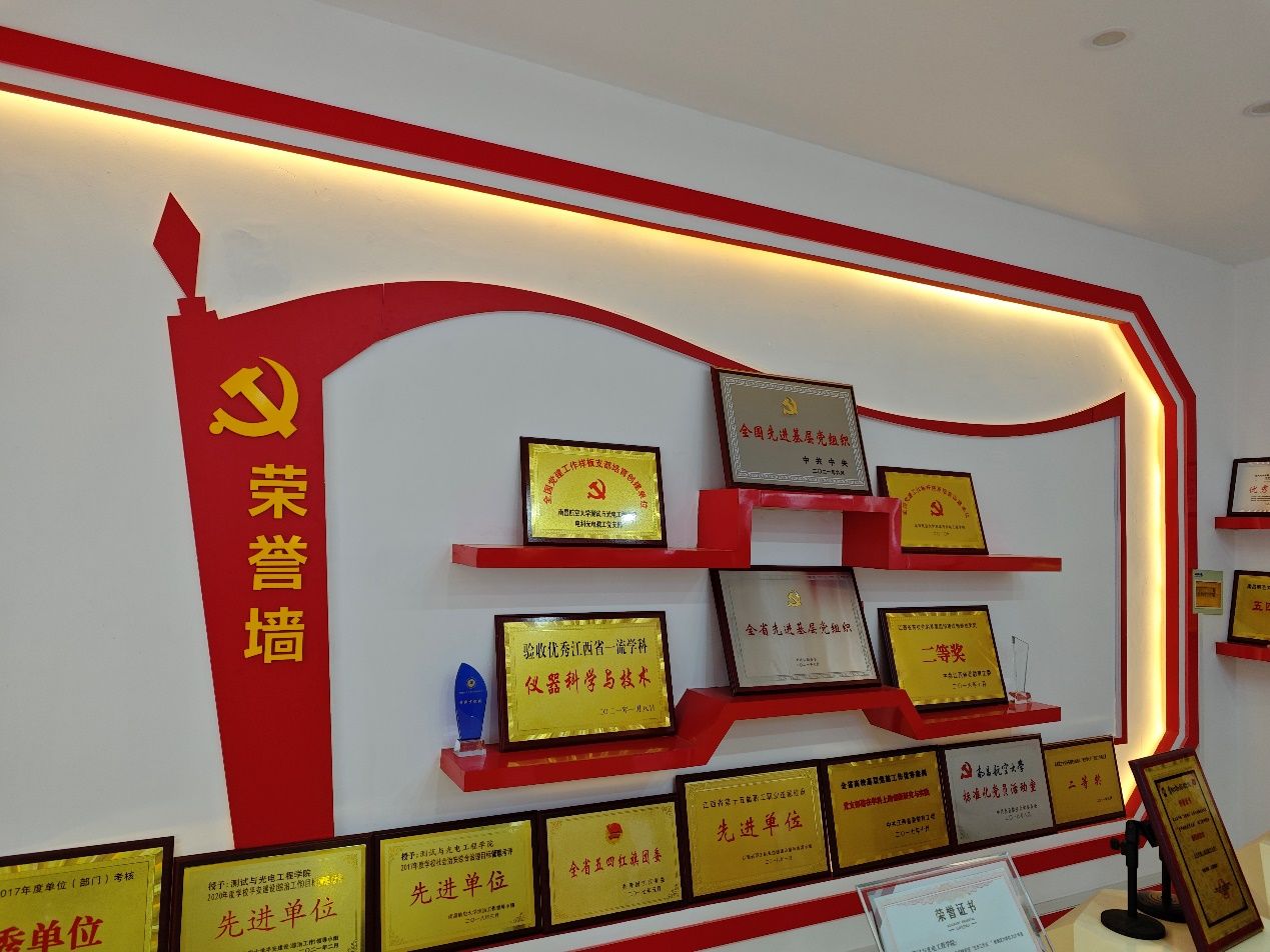 最后,周勇一行参观了南昌航空大学测试与光电工程学院党建展览馆,两院人员在展览馆合影留念。
