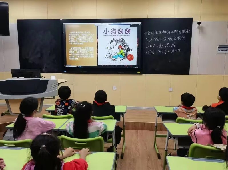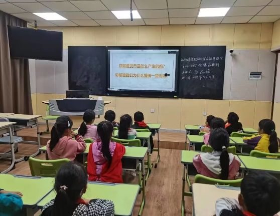本次授课的主讲人是来自会计2201班的赵思瑶同学,她为小朋友们带来了会计学院特色课程——《金钱的旅行》。本课题的目标是通过生动的故事,让小朋友们了解货币的来源和流通流程,学会合理规划使用金钱,树立正确的财富观。